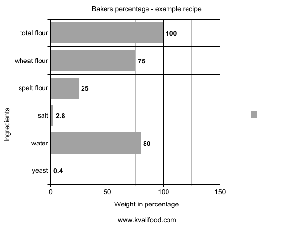 This weight is defined as "100%". The rest of the ingredients of the recipe are then calculated in relation to that total weight.