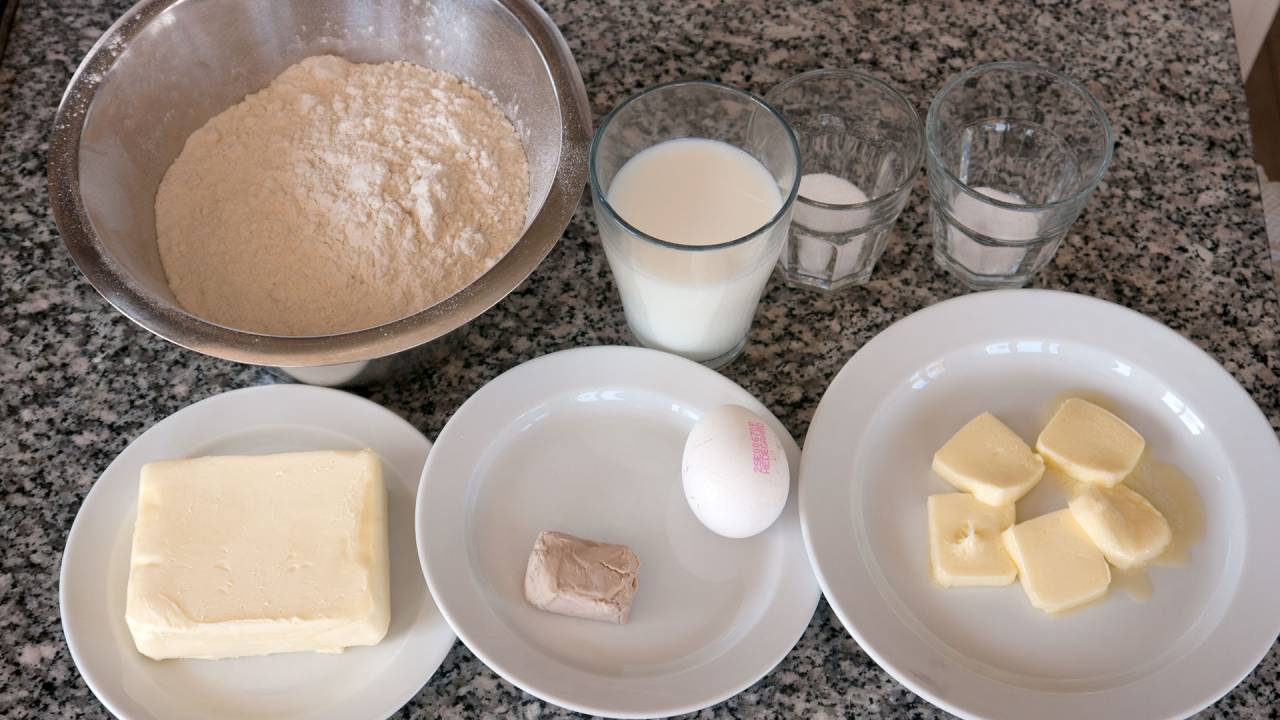 You measure and place all the ingredients on your table.