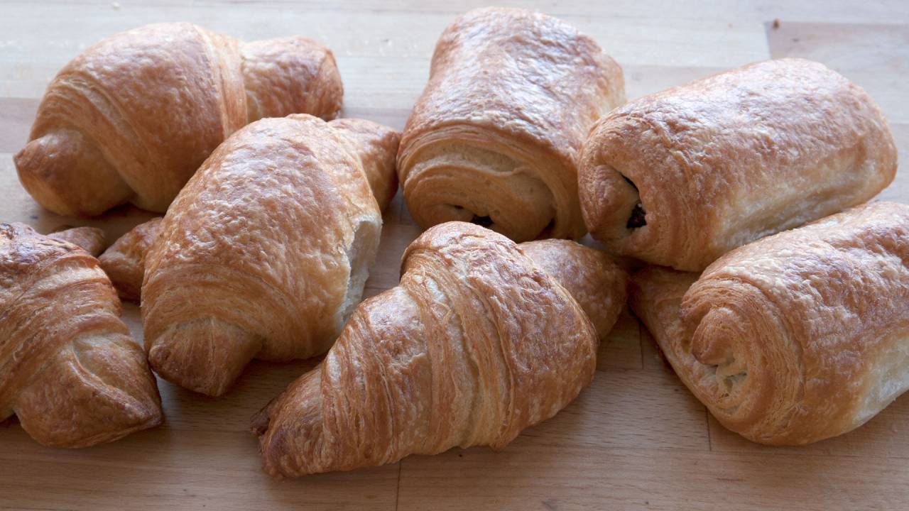 Croissant made with butter and pain au chocolat