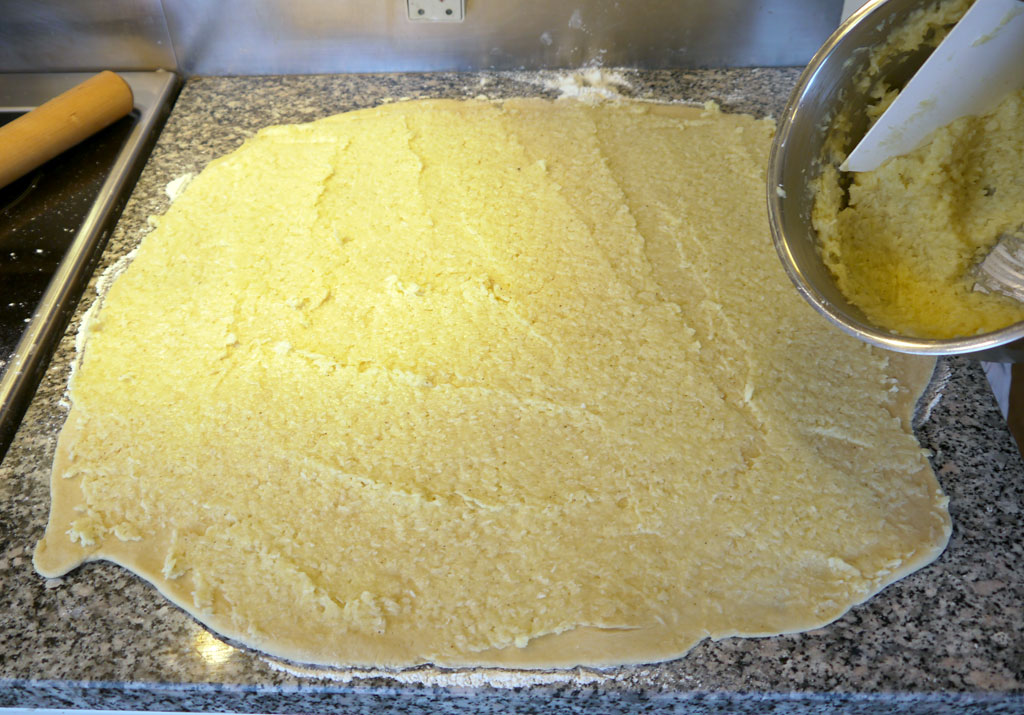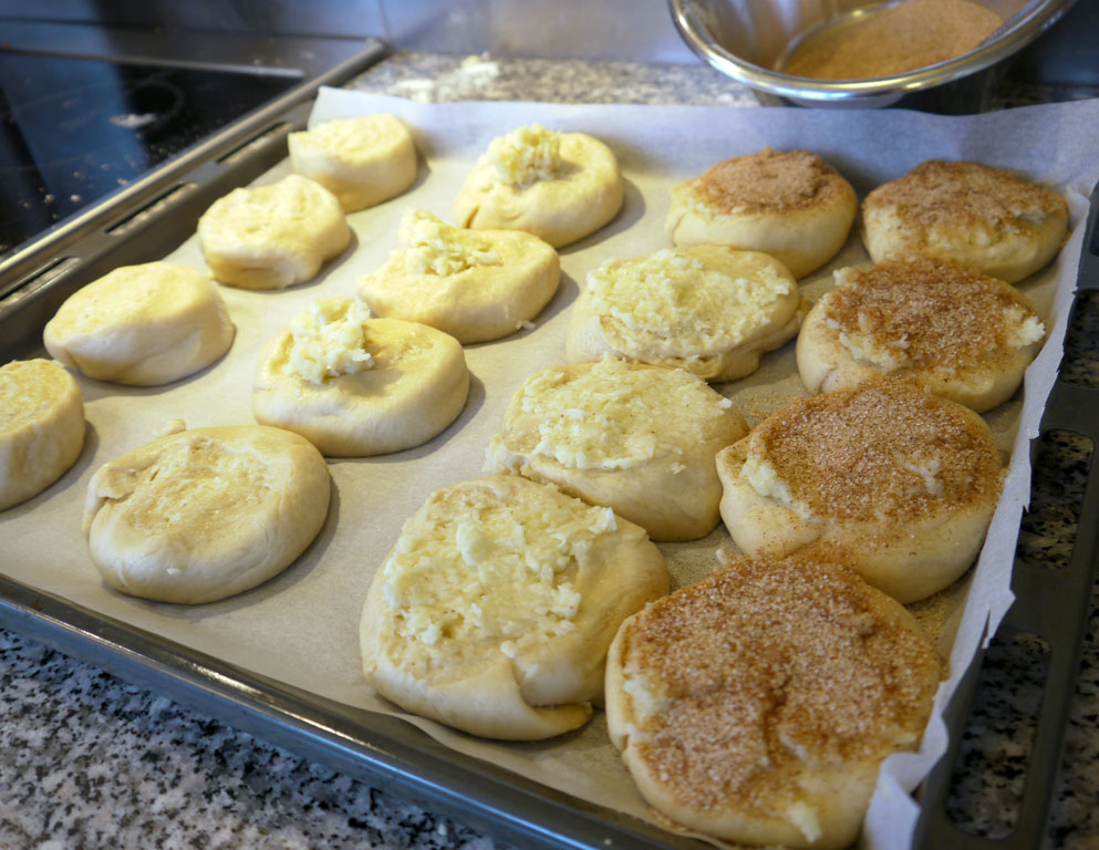 The last of it can be added on top of the rolls when they have been flattened. Then you also get some baked cream on top. Which is nice.