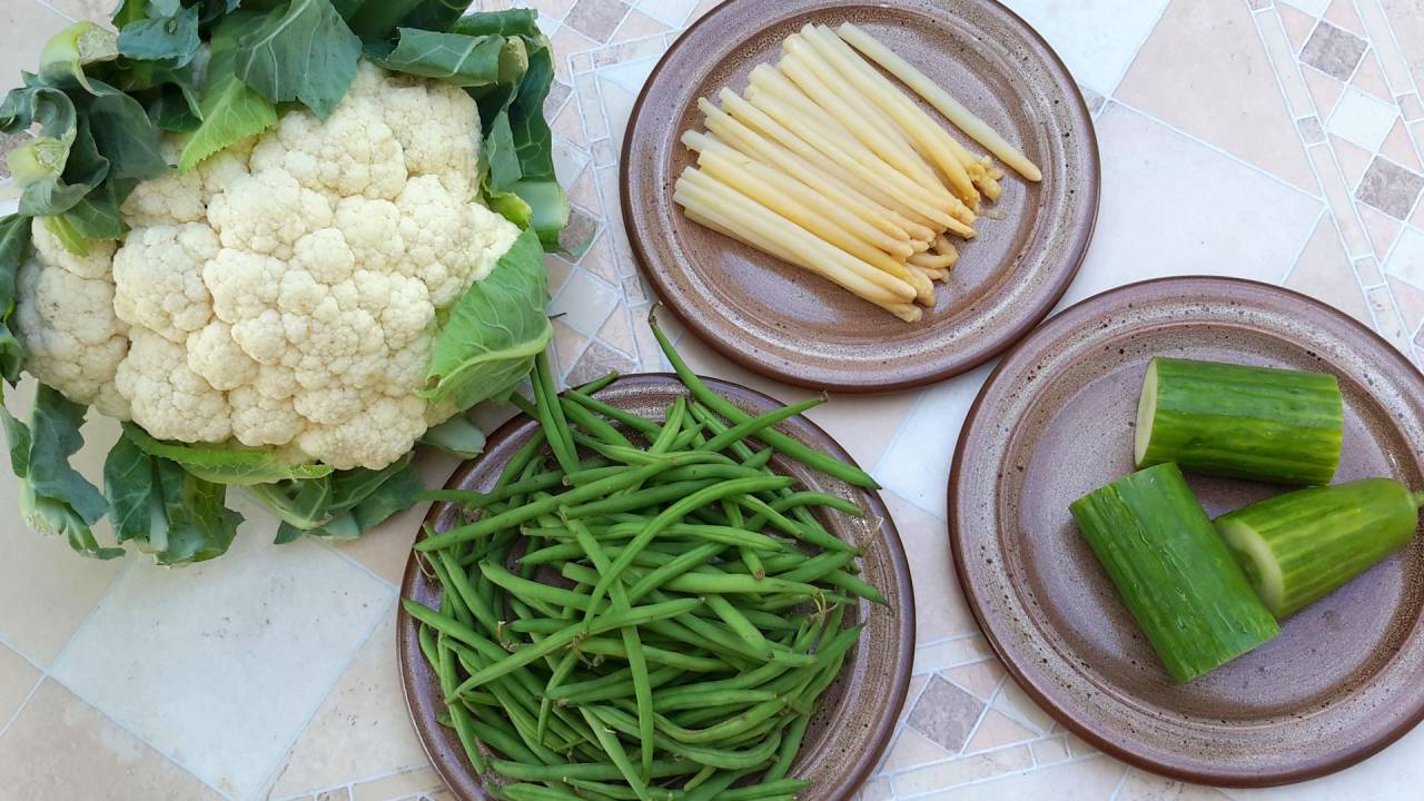 Irma (after cookbook author Irma S. Rombauer) - salad with cauliflower, cucumber, beans and asparagus