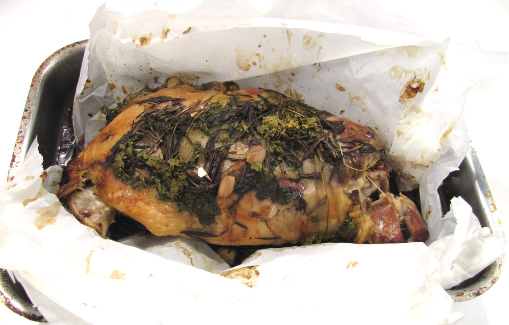 It was a very large leg of lamb of about 3 ½ kg (7 lbs). Smaller legs should probably not have more than 10 hours.