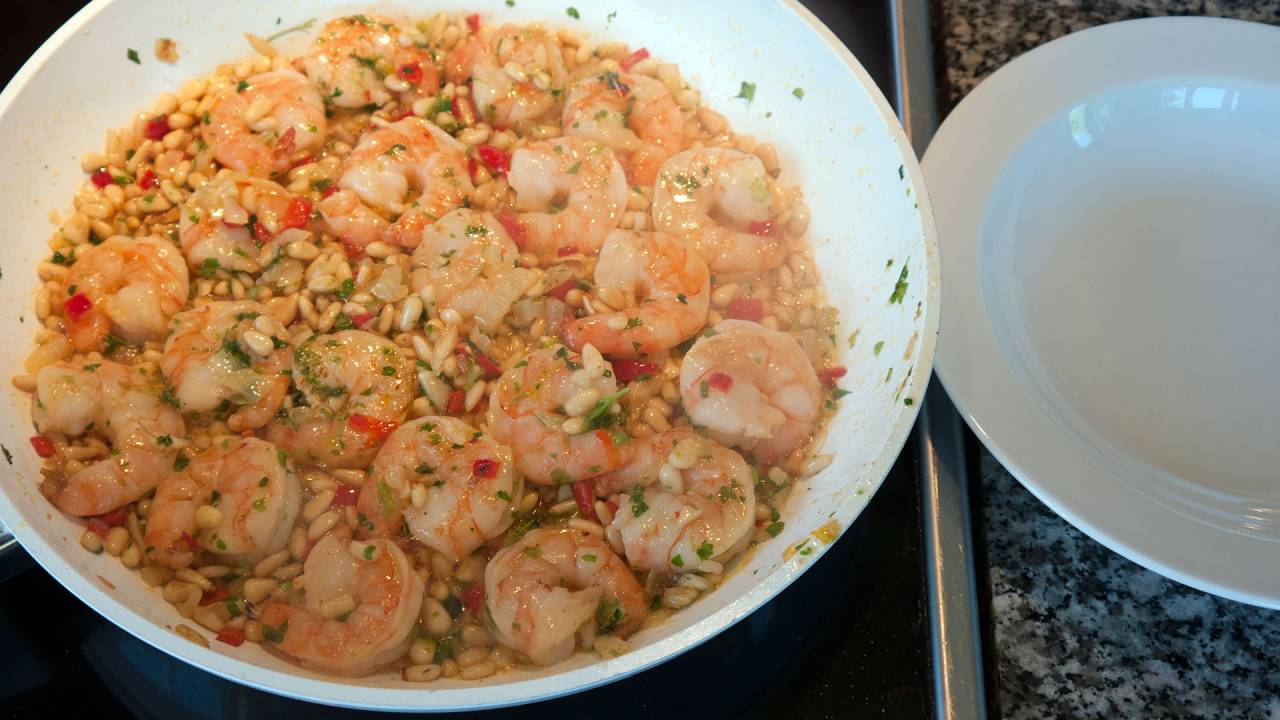 Prawns a la Rogacki - King prawns with Pine nuts