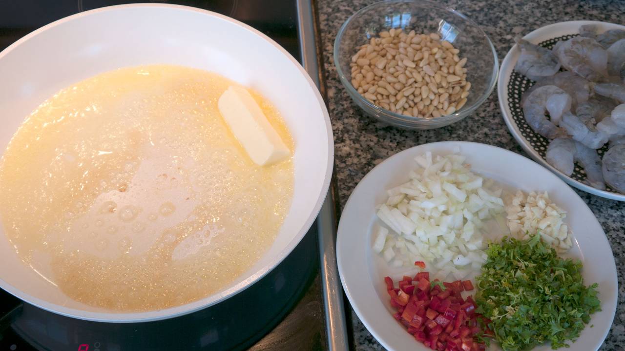 Melt the butter in the pan and let it effervesce.