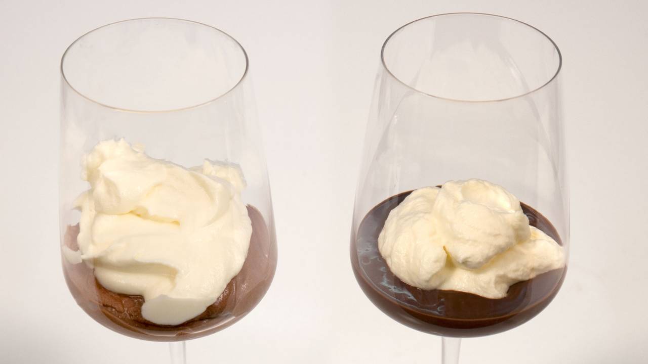 - The simple chocolate mousse with whipped cream on top. It is very flavorfull and not that sweet. My favorite.