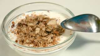 Video Recipe - A müesli without oatmeal is a pure luxury. It is easy to make and it tastes good to boot. However, it is an advantage if you are able to use a kitchen machine with a vegetable slicer. Otherwise, it will take its own sweet time.